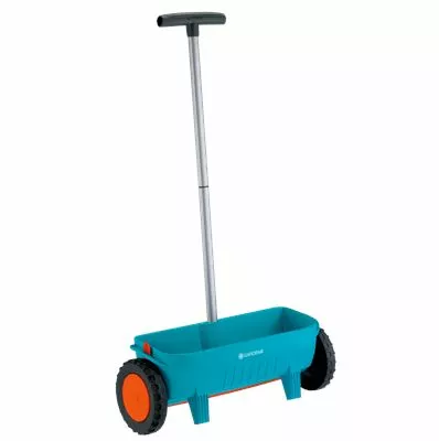 Разбрасыватель-сеялка GARDENA Classic 300, изготовленный из высококачественного пластика, может стать Вашим верным помощником в саду: имея ширину разбрасывания 45 см и объем 10 л, он обеспечивает точное дозирование семян и удобрений. В разбрасыватель можно загружать распределяемый материал различного размера - например, удобрения, семена, известь, песок, каменную крошку или соль. Разбрасыватель-сеялку можно использовать круглый год. Специальная таблица позволяет определять оптимальное количество удобрения для неизменно точного дозирования. Инновационный высокоэластичный разбрасывающий цилиндр обеспечивает равномерное распределение. Благодаря удобной функции свободного вращения колес разбрасывание происходит только тогда, когда Вы толкаете устройство вперед. При заднем ходе или развороте разбрасыватель-сеялка не функционирует. На контейнере расположен простой в обращении регулировочный рычаг. Двухколесный привод гарантирует мягкость хода, а "тракторный" профиль - прекрасное сцепление колес с различными поверхностями. Сами колеса изготовлены из устойчивого к коррозии пластика. T-образная рукоятка подходит для ведения одной или двумя руками. Разбрасыватель-сеялка устойчив к появлению трещин и легко моется струей воды. Практичная функция: его можно хранить в стоячем или подвешенном положении.